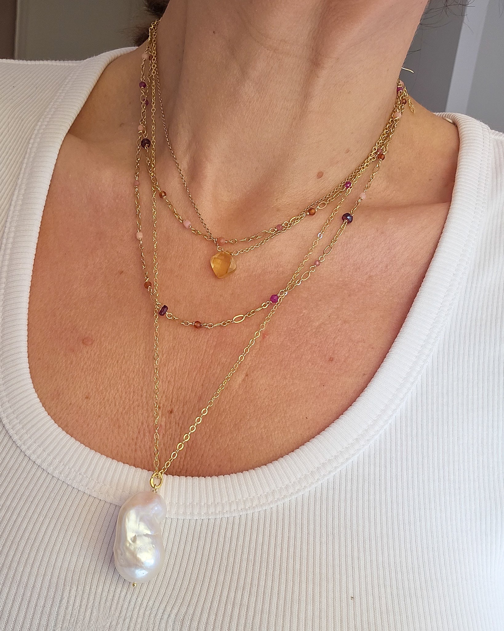 Catena e chiusura in gold filled con placcatura oro 14 carati.