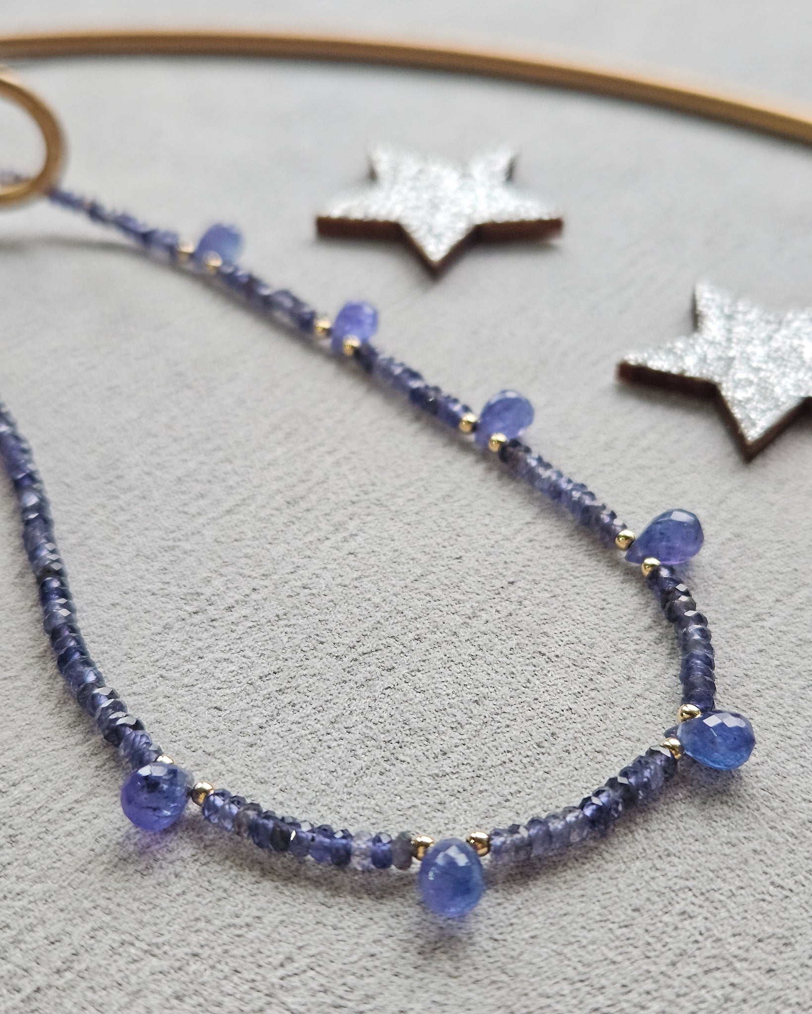 Girocollo in iolite blu e gocce di tanzanite